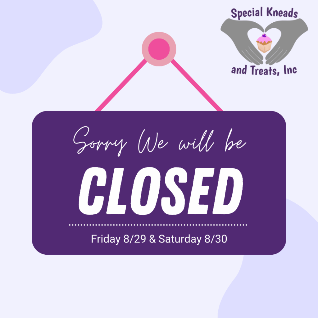 Due to unforeseen circumstances in the Special Kneads Family, the bakery will be CLOSED on Friday, August 29th. As a reminder, we will also be closed on Saturday, August 30th, in celebration of Labor Day.
