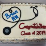 If you’re tight on time, you can order an 8-inch round 24 hours in advance— or, we also have 9×13 sheet cakes in our cases, ready to buy at any time. Also available anytime are our 6-inch round cakes, which are lovingly decorated by our special needs employees! All of these options can be personalized with your own lettering.
